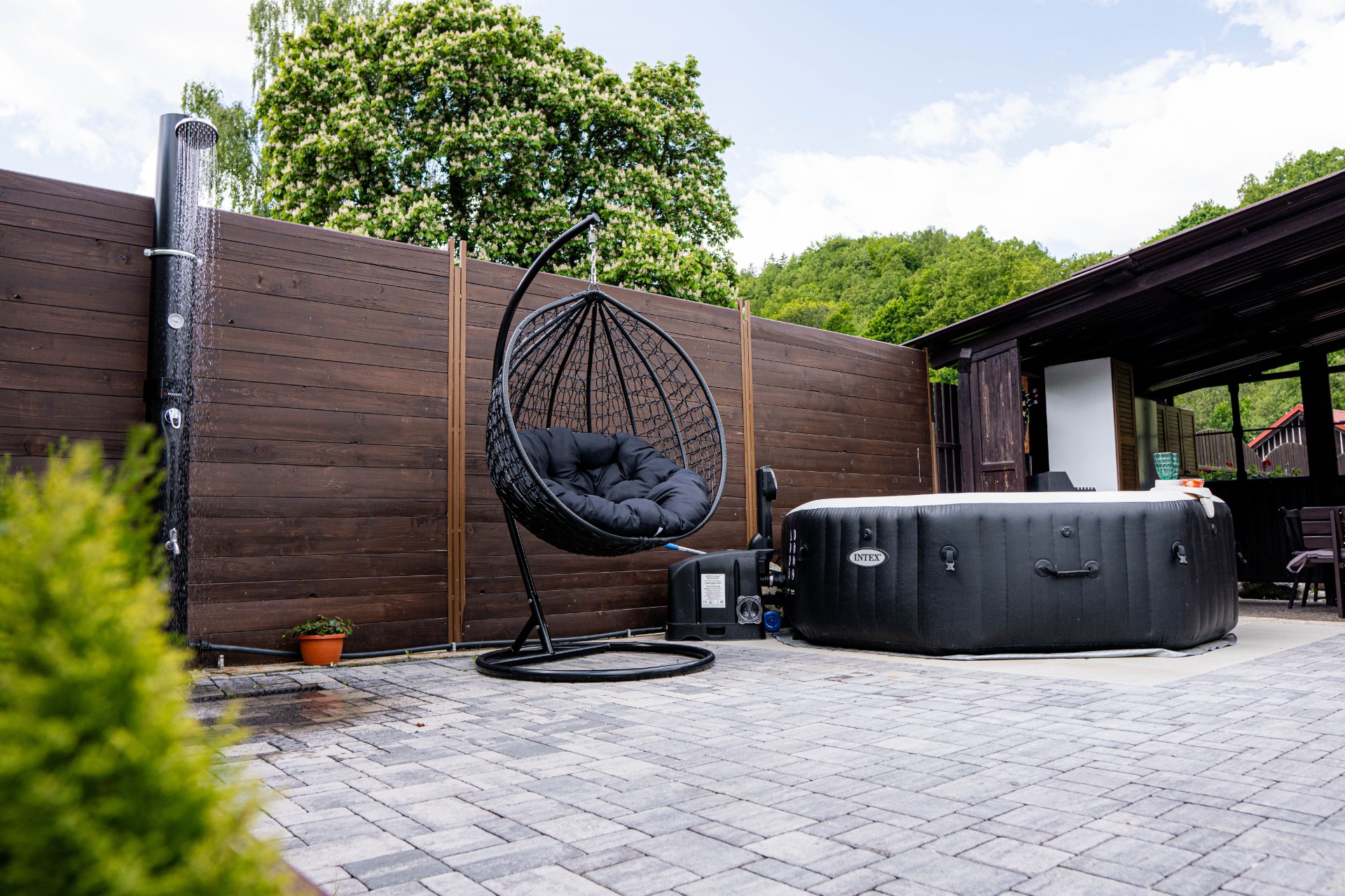 V létě vás osvěží bazén 6×3 m, v chladnějších dnech pak vířivka s výhledem do zahrady a finská sudová sauna.