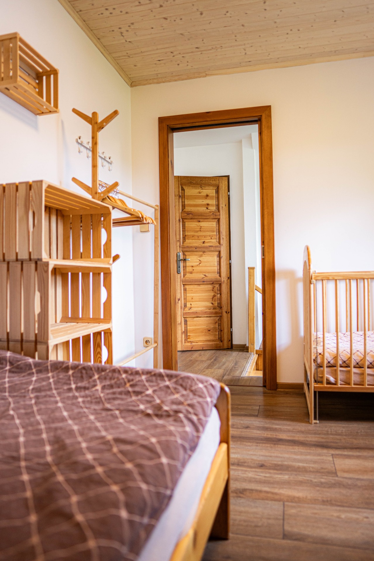 Prostorná chalupa s plně vybavenou kuchyní, útulným obývákem a několika ložnicemi. V létě pergola se sezením — vždy vás přivítá atmosféra pohodlí a klidu domova.